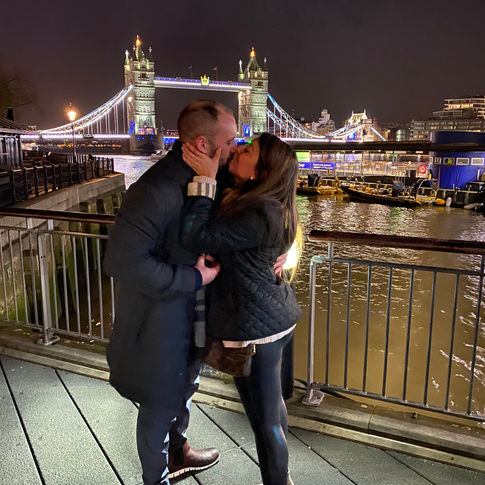 On our first trip to Europe, we had a grand plan to spend one week in London, one week in Madrid, and then four lovely days in Paris. Little did we know, a little something called Coronavirus had slightly different plans for us and the world. While we had made it to London, each day we were growing more and more nervous about continuing our trip but wanted to make the most of our time there. We spent the first few days seeing all of the sites and one of the last places I wanted to see was the Tower Bridge. I had told Will I really wanted to see it at night so we could see it with all of the lights. On our fifth night there, Will surprised me with a car service to take us to the Tower Bridge. Unfortunately, the driver took us to the London Bridge but luckily they're not too far from each other and it made for a great walk.